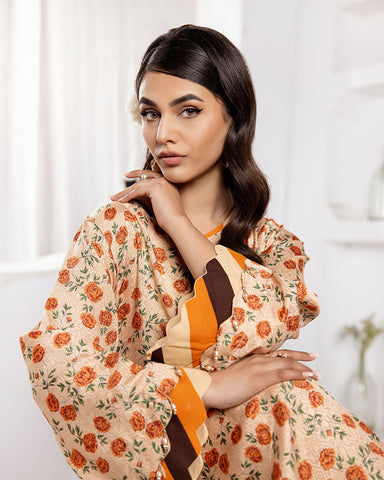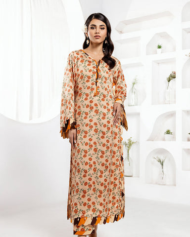 Introducing our exquisite cotton self-jacquard printed shirt, now elevated with the addition of stunning pearls and beautiful laces along the border
