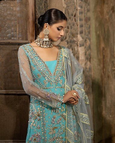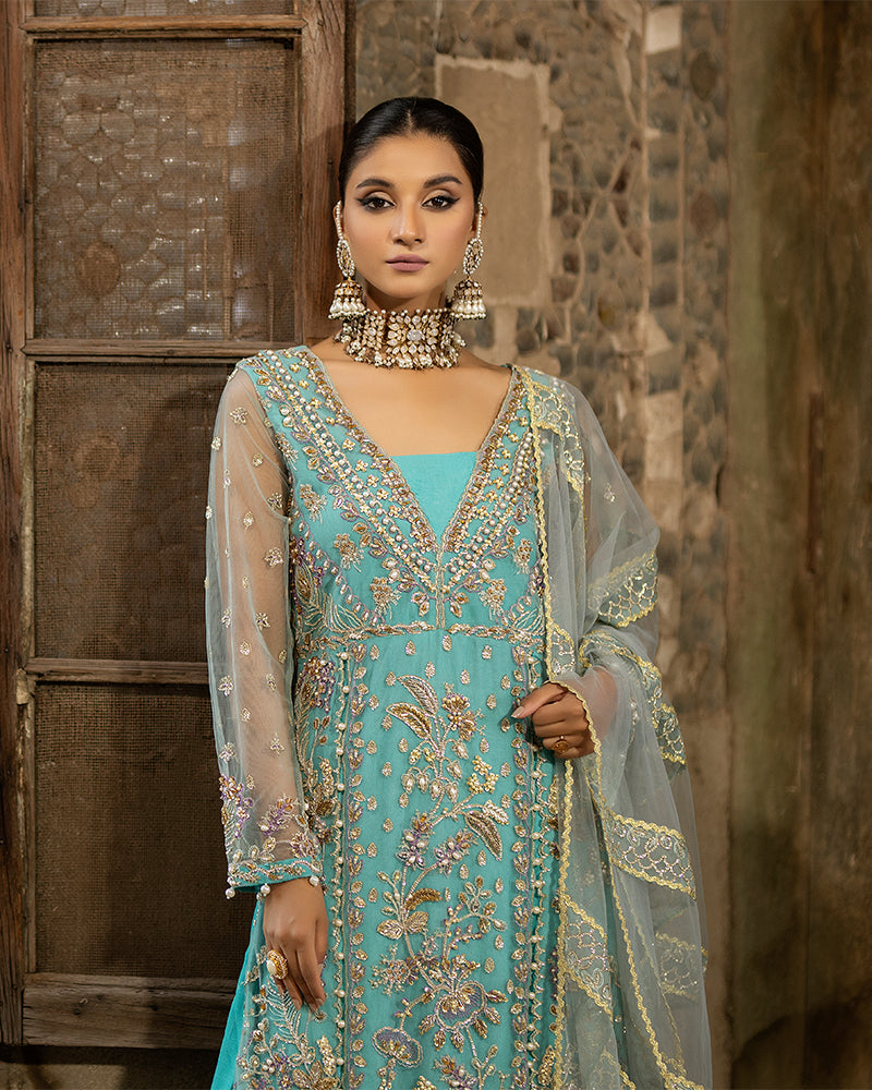 We have included a net embroidered dupatta, delicately stitched with laces and embroidery borders