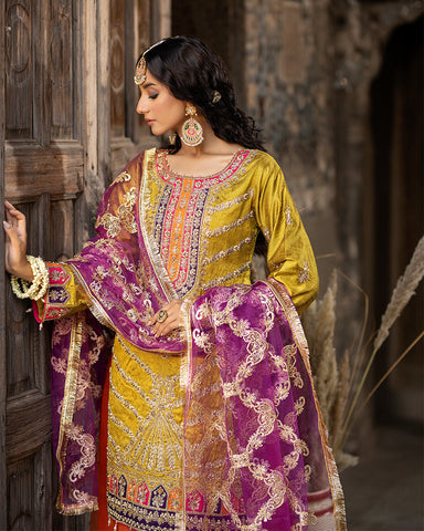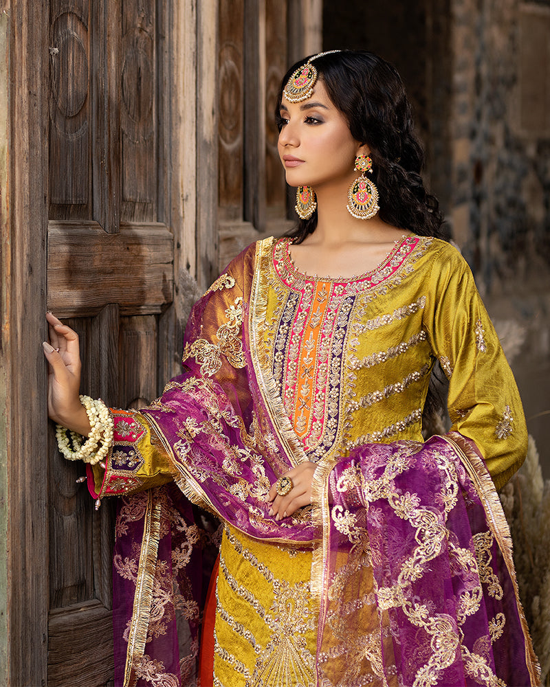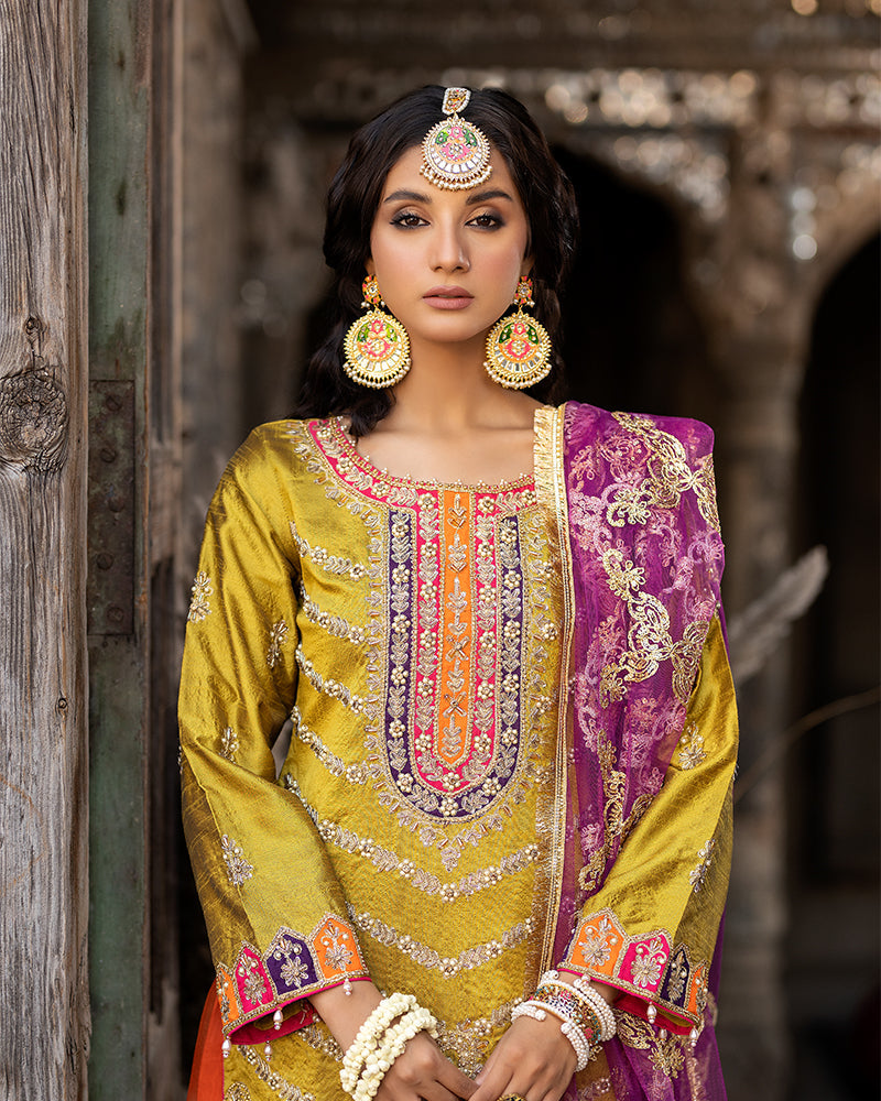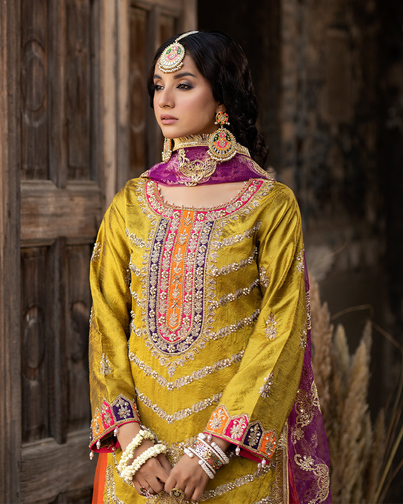 Stunning raw silk (AARI) embroidered shirt, meticulously enhanced with handcrafted adda work