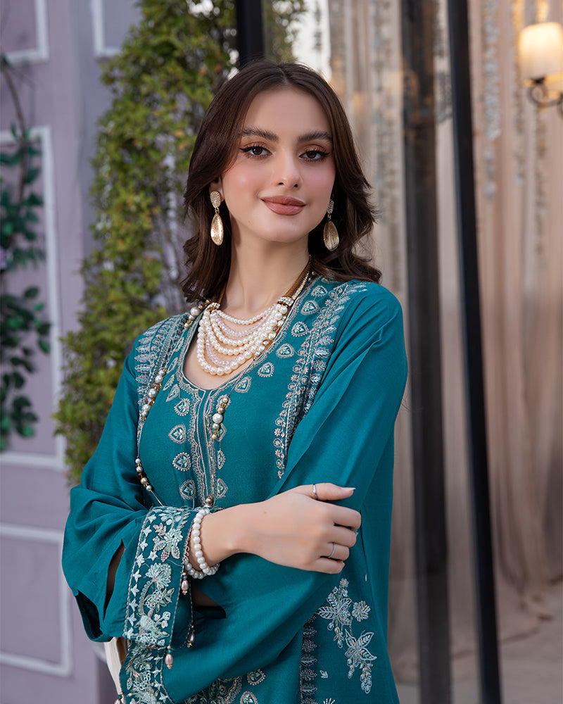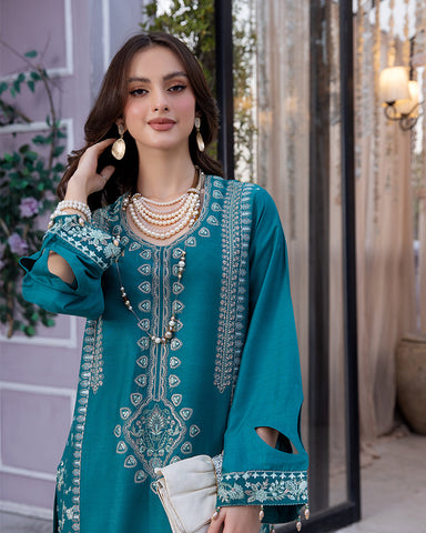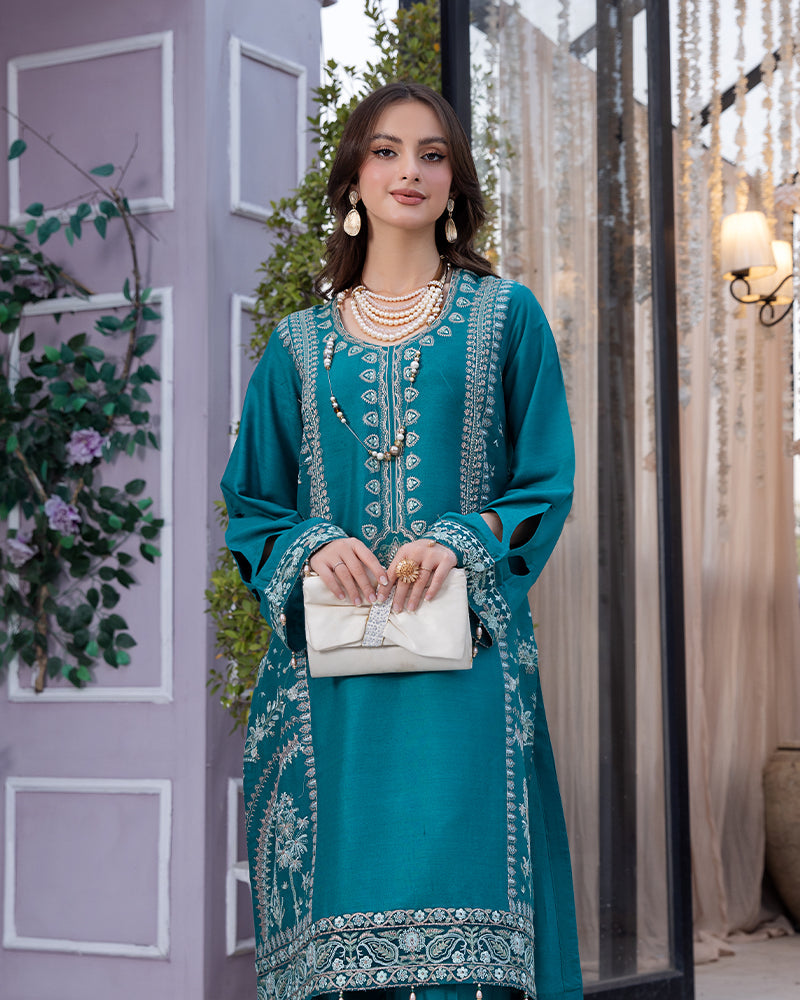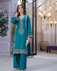 Description: Delicately stitched linen embroidered shirtLinen plazo2 pcs stitched outfit