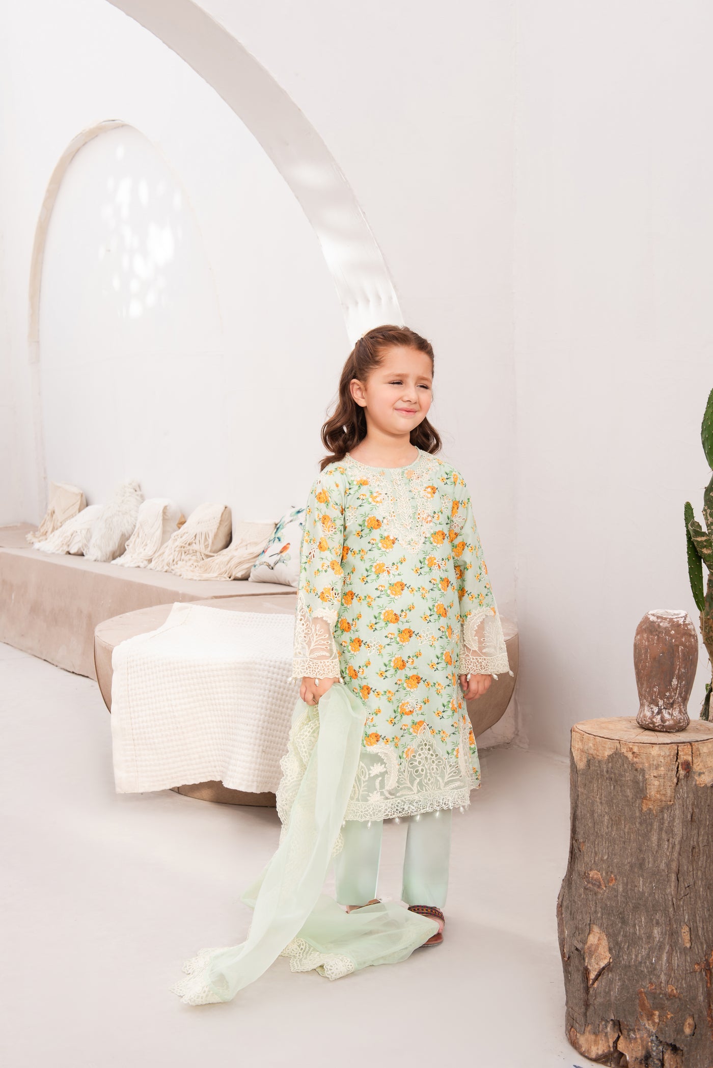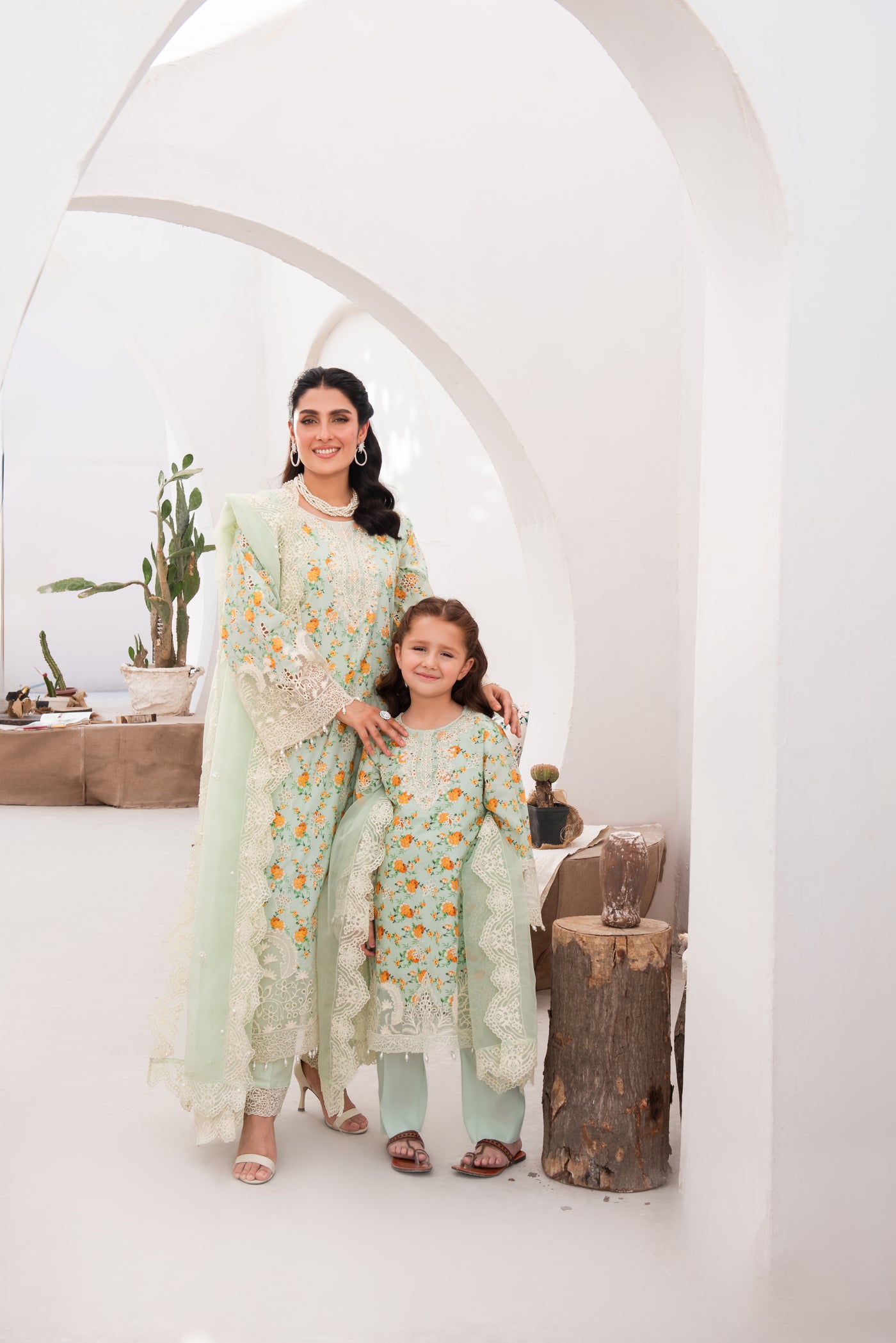 1-Introducing our exquisite printed lawn Chikankari Embroidered Shirt, featuring intricate organza embroidery on the shirt bottom and sleeves, adorned with delicate pearls
