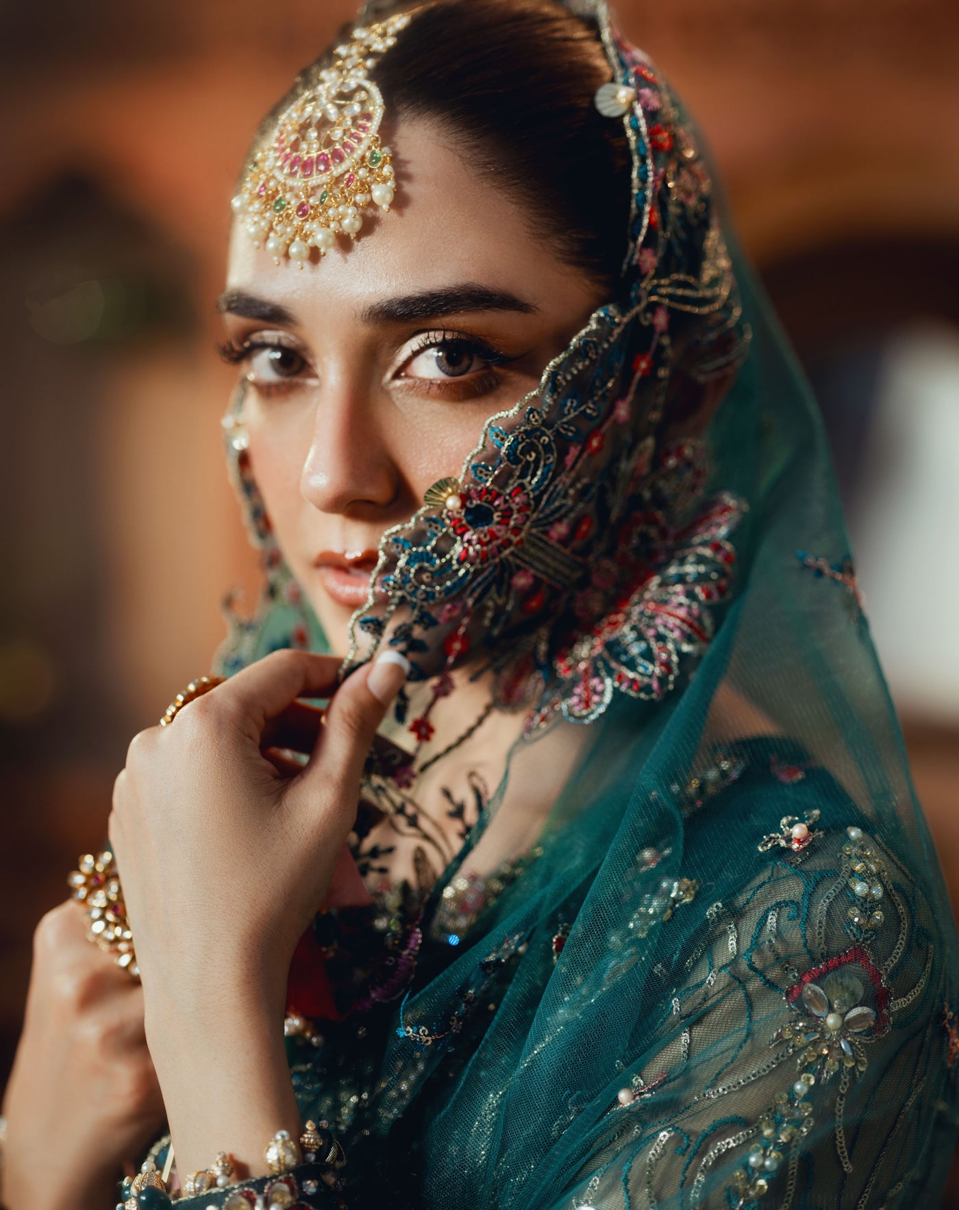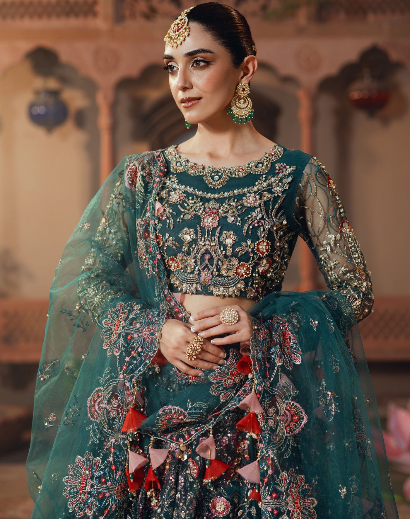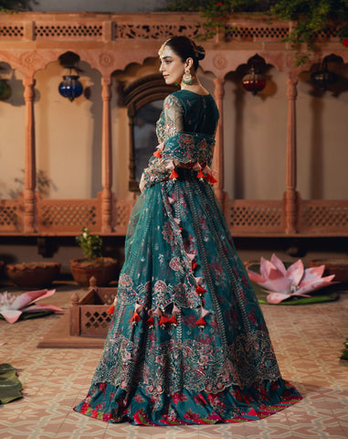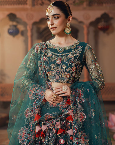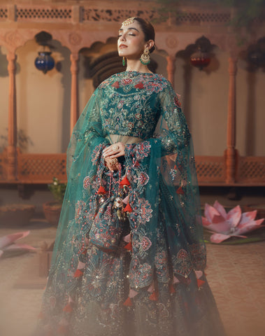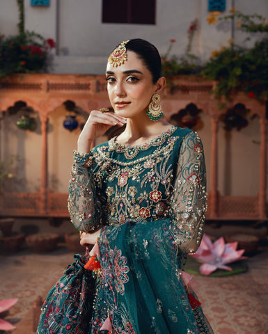 Net Multi-Embroidered Dupatta: A breathtaking statement piece, this net dupatta is a work of art, embroidered with sequins, sea shells, pearls, and finished with designer organza tassels that sway gracefully with every movement. Its delicate detailing brings a sense of fluidity and charm to your ensemble.