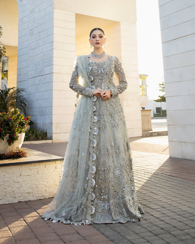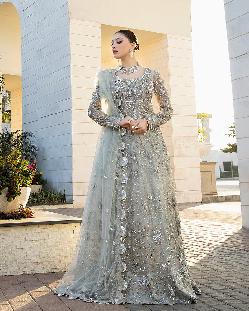 Description: Net embroidered lehnga embellished with adda work,Net embroidered (choli) enhanced with handcrafted adda work,Net embroidered dupatta with diamantes spray,Separate can can included