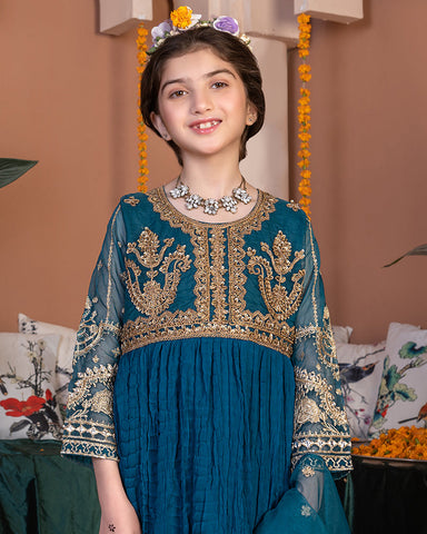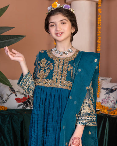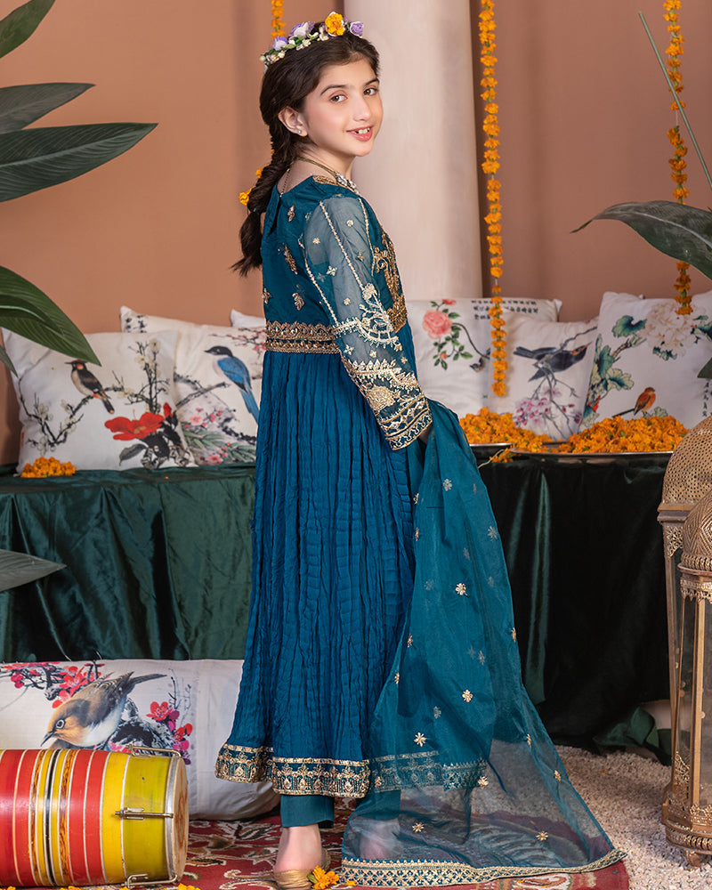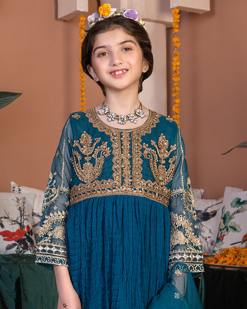 Description: Chiffon embroidered maxi enhanced with hand crafted adda (Arri) workOrganza embroidered dupattaViscose trouser