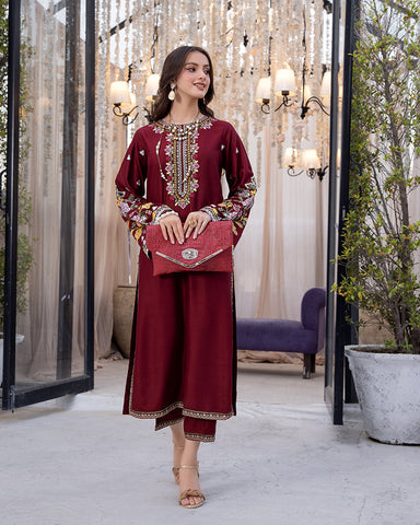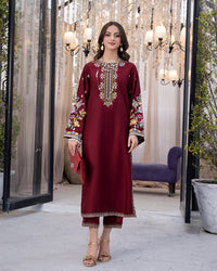 Description: Linen embroidered shirt enhanced with diamante sprayLinen trouser stitched with laces2 pcs stitched outfit