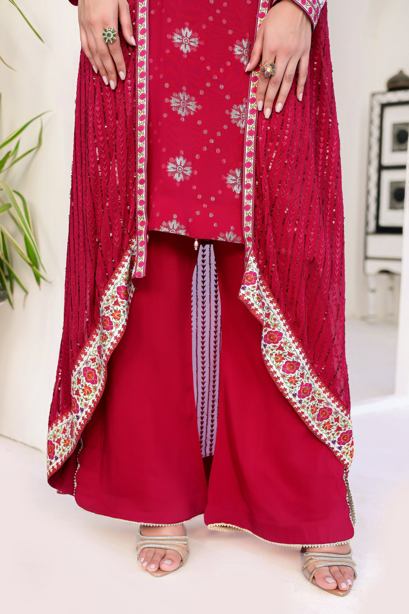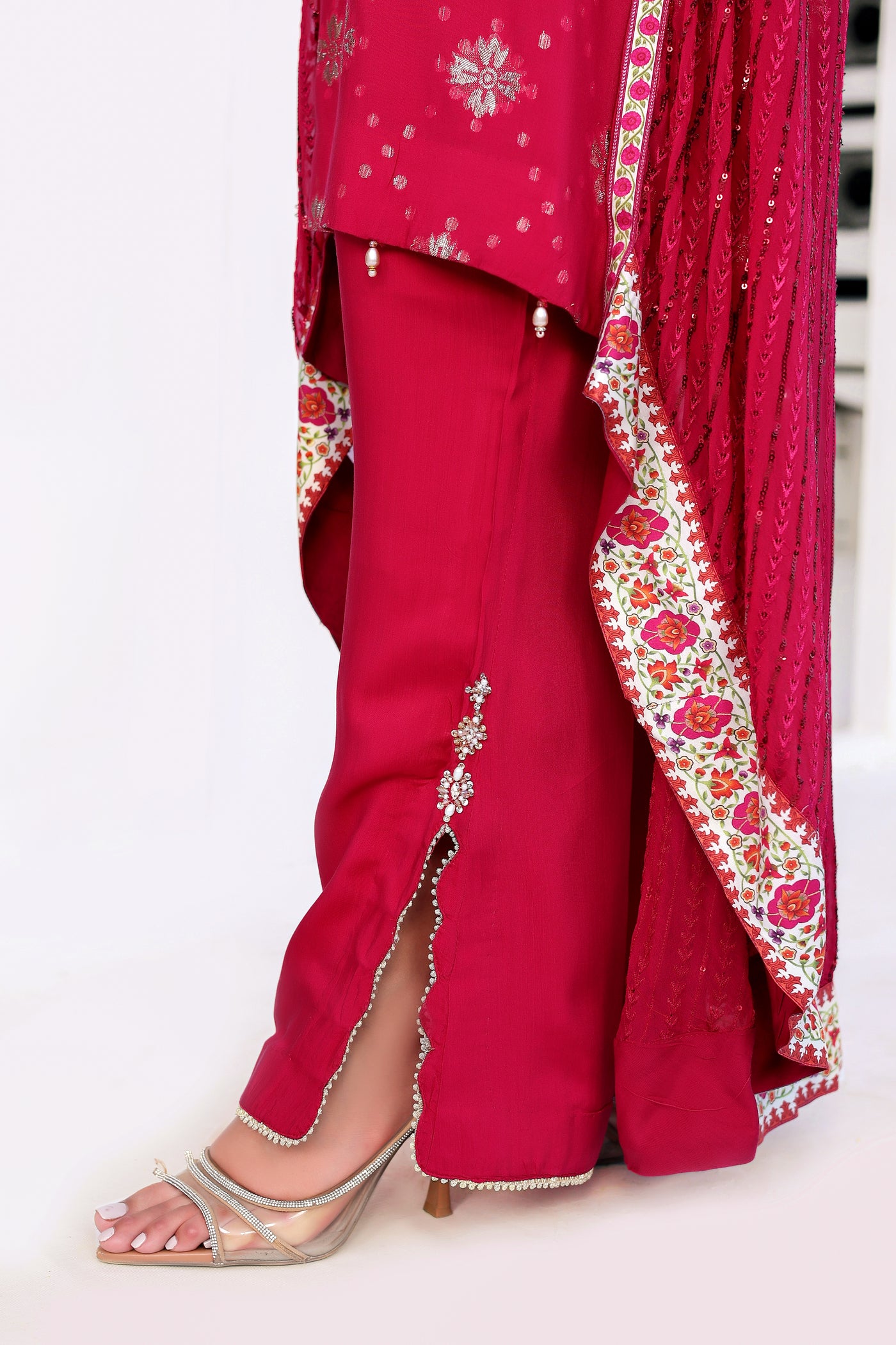 3-this dress includes viscose trousers, which are beautifully enhanced with handcrafted embellishements and laces.