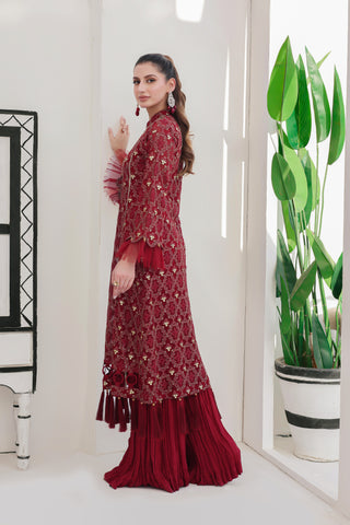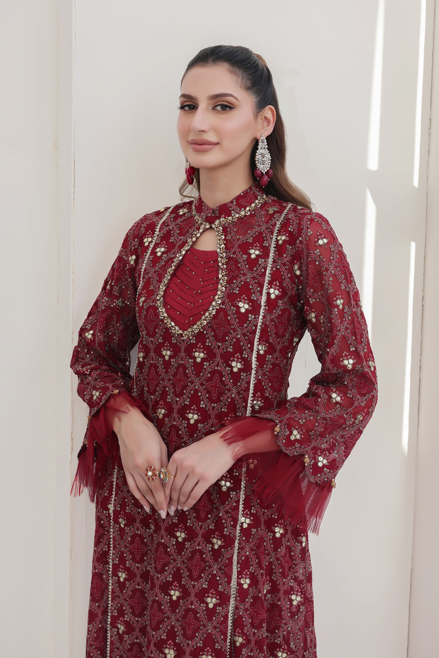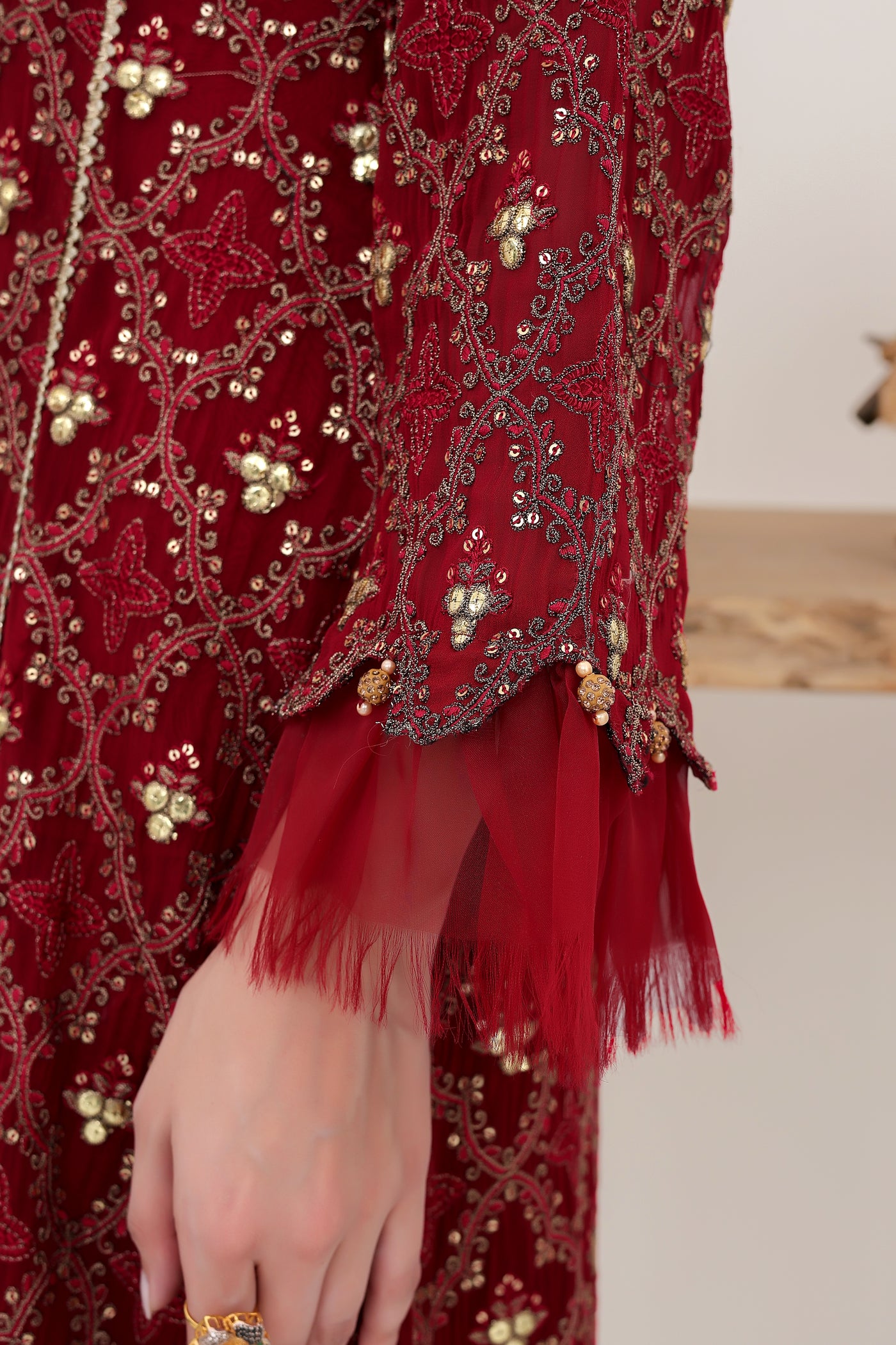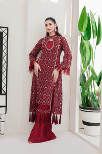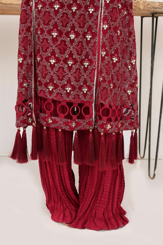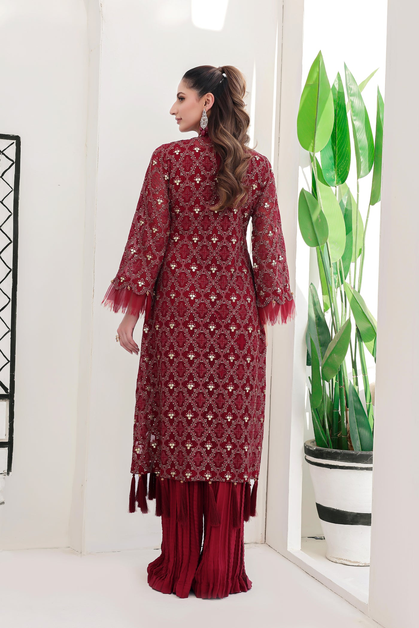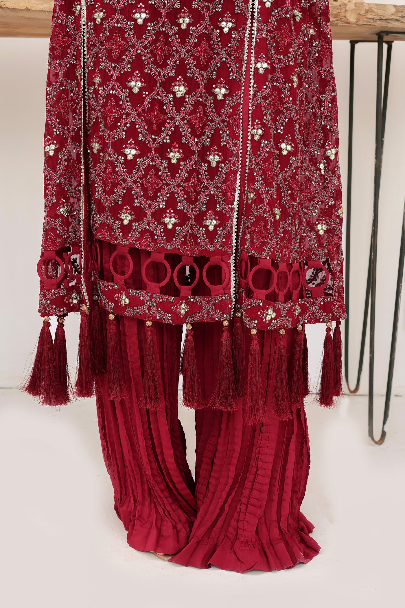 1-stunning chiffon sequin embroidered shirt, featuring handcrafted embellishments on the neckline and playful tassels on the borders