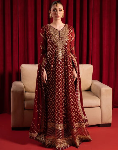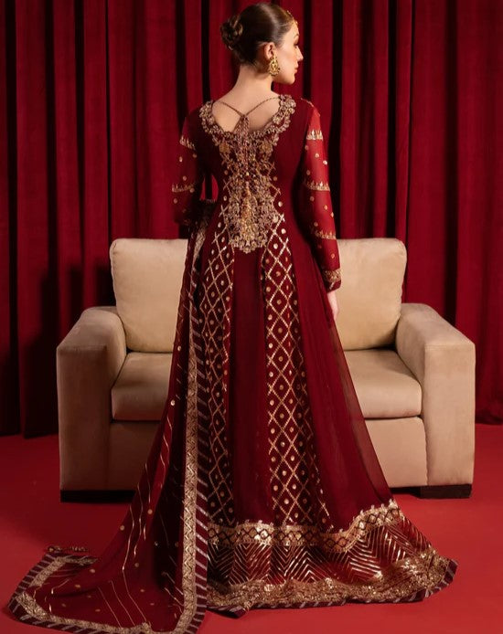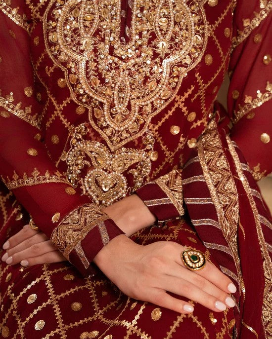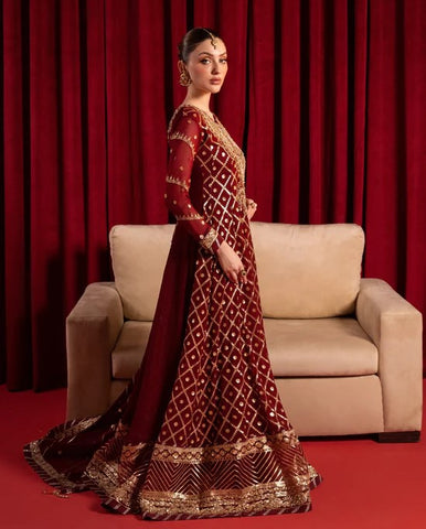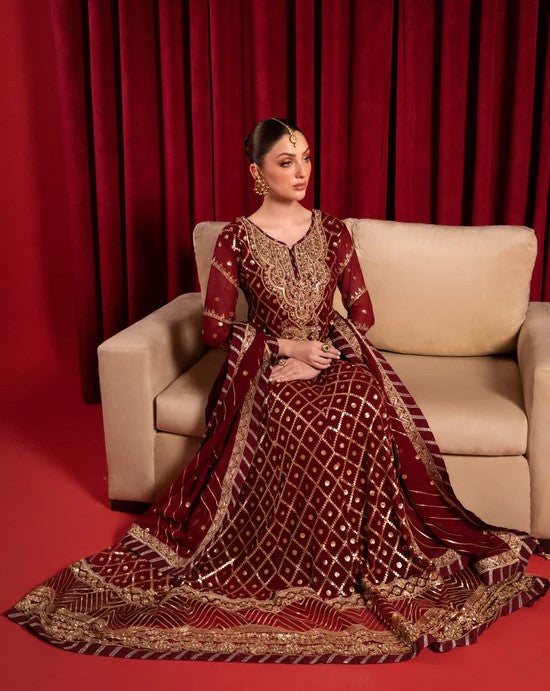 Chiffon Sequin Embroidered Dupatta: Complete your look with the matching chiffon sequin embroidered dupatta, artfully finished with delicate tassels. This stunning accessory adds an air of sophistication, enhancing the overall elegance of your ensemble.