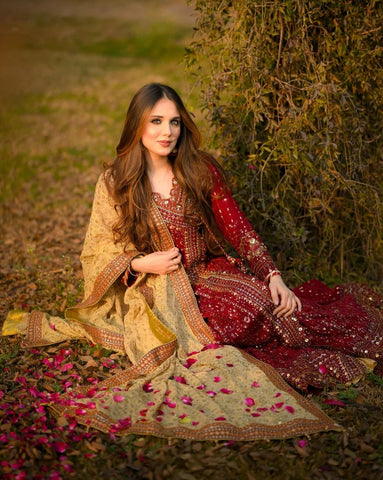 Grip Crushed Shararah: Complete the ensemble with our stylish grip crushed shararah, offering both comfort and elegance.