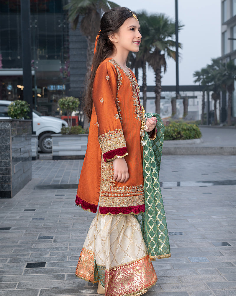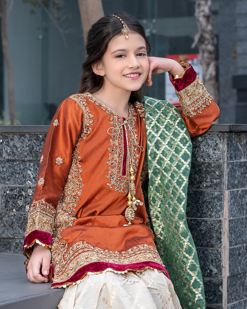 Raw silk dori embroidered shirt, meticulously adorned with intricate handcrafted adda work
