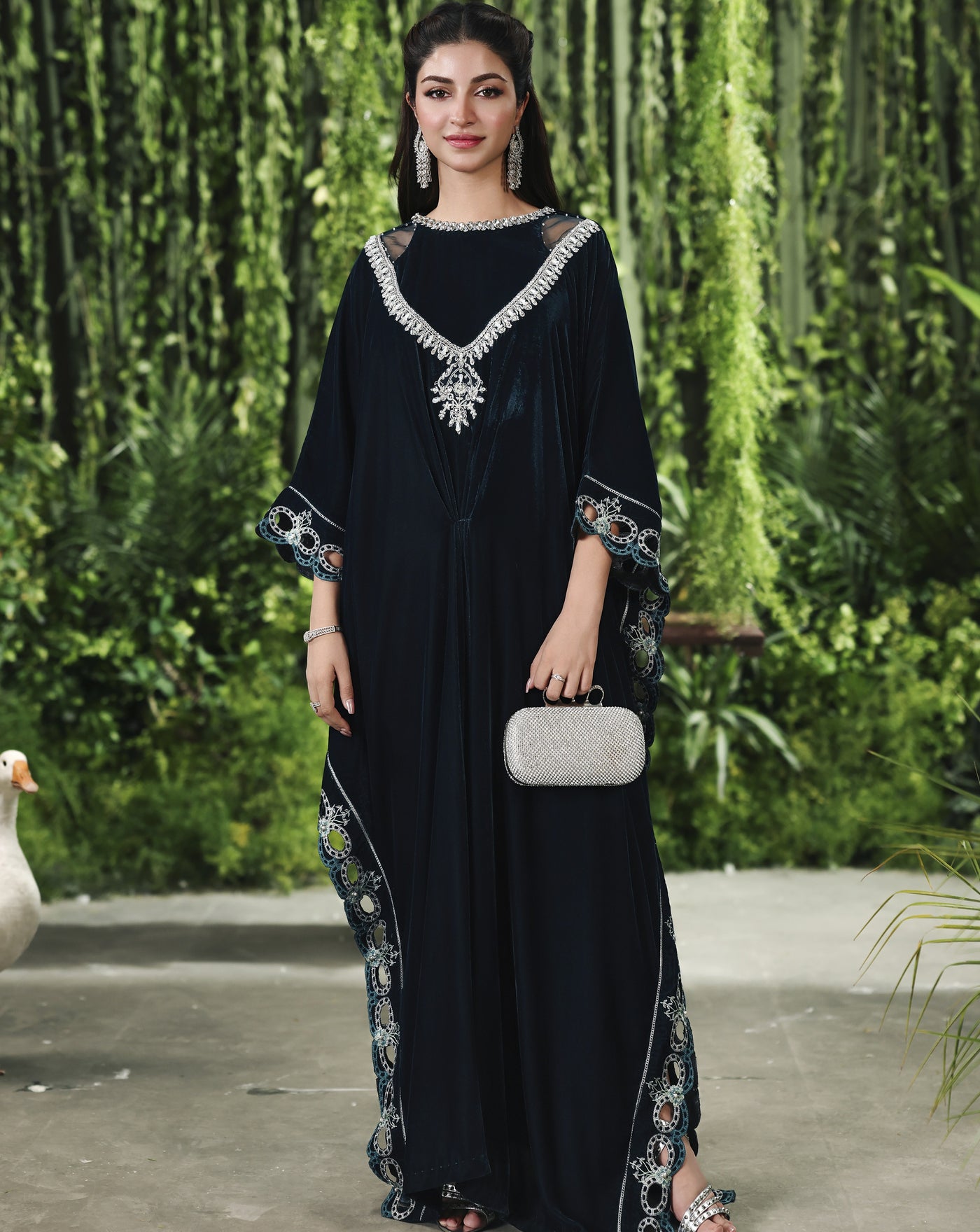Adorned with a dazzling array of embroidered crystals, shimmering stones, lustrous pearls, and glistening sequins, this piece exudes regal allure and radiant charm.