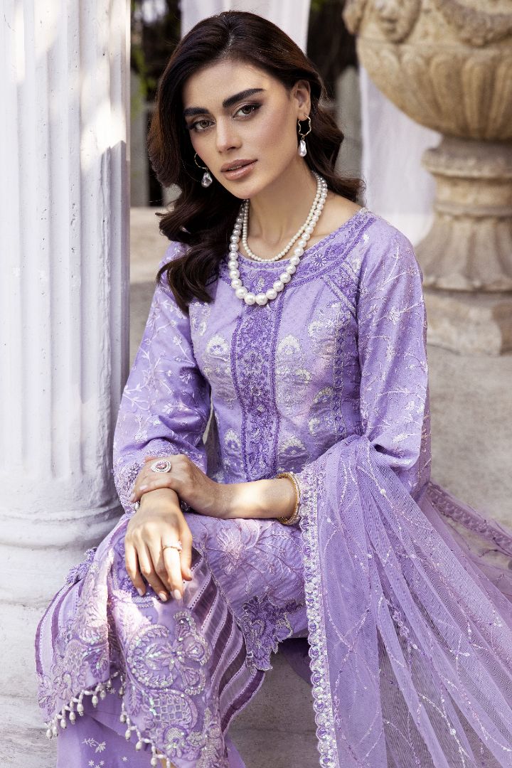 1-The luxurious allure of a cotton jacquard screen printed shirt adorned with embroidery and pearls. The intricate embroidery adds a touch of elegance to your ensemble