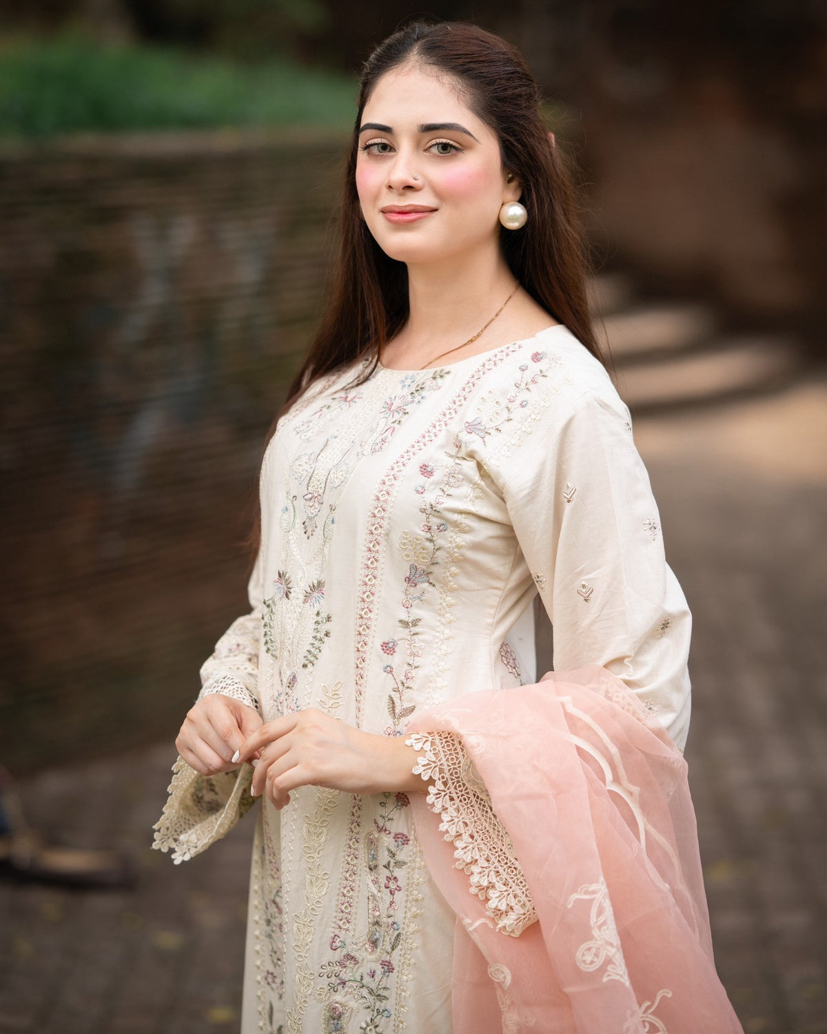 1-Introducing our exquisite Cotton Sequin Chikankari Embroidered Shirt,