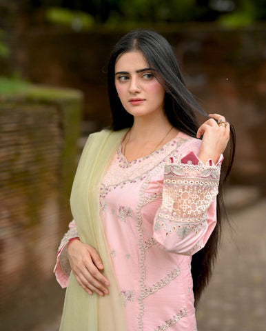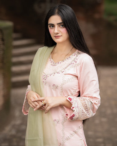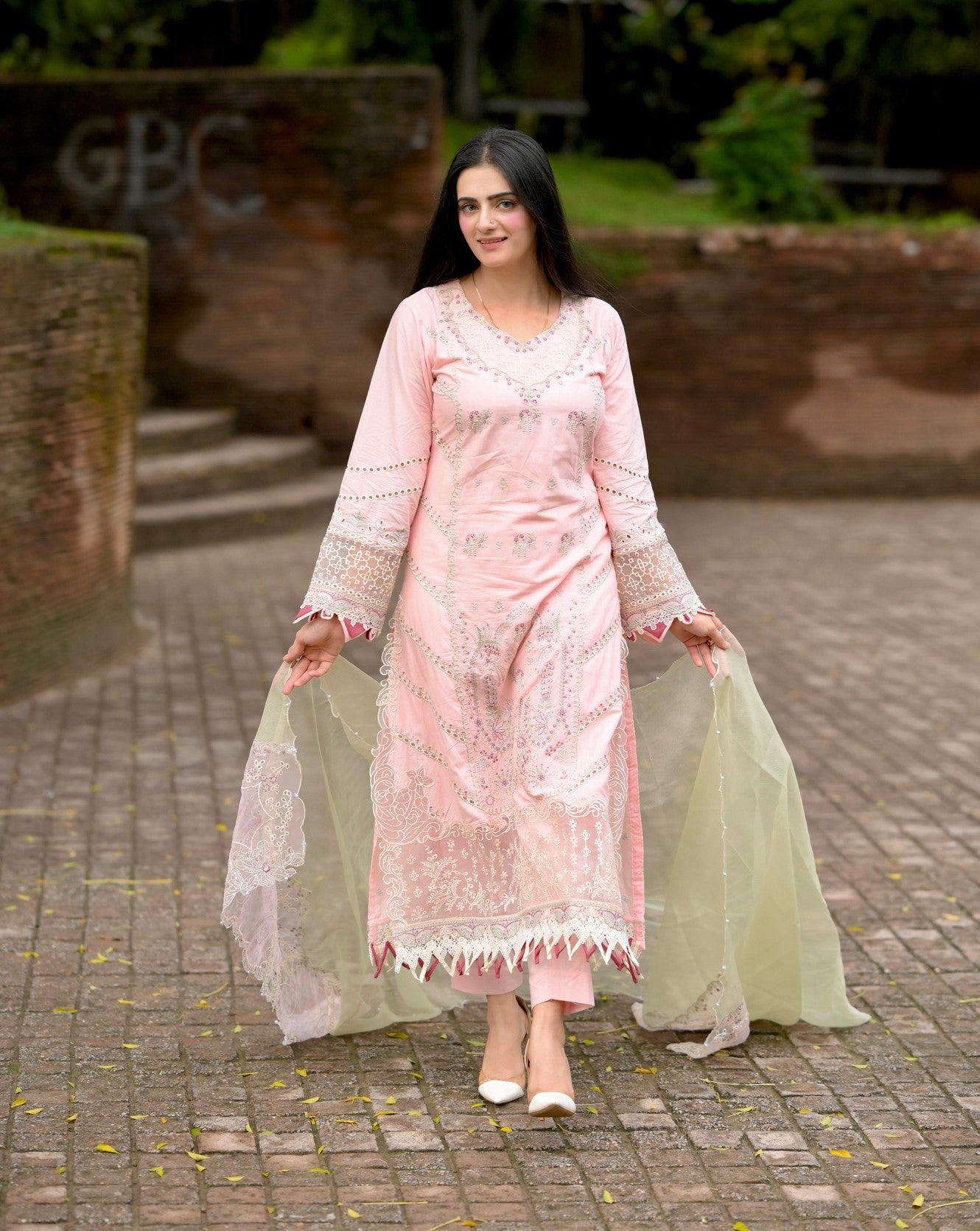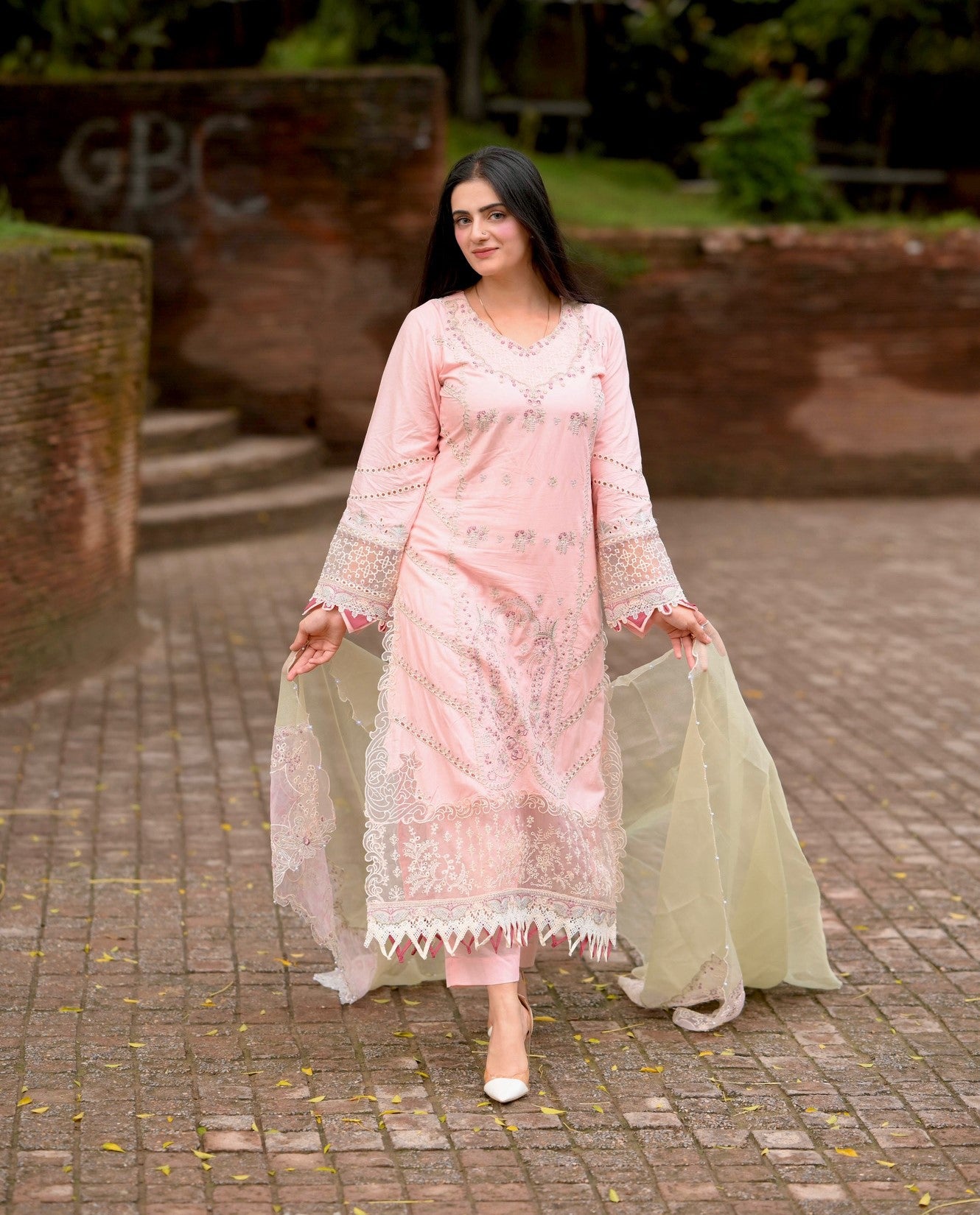 1-Introducing our exquisite Cotton Sequin Chikankari Embroidered Shirt,