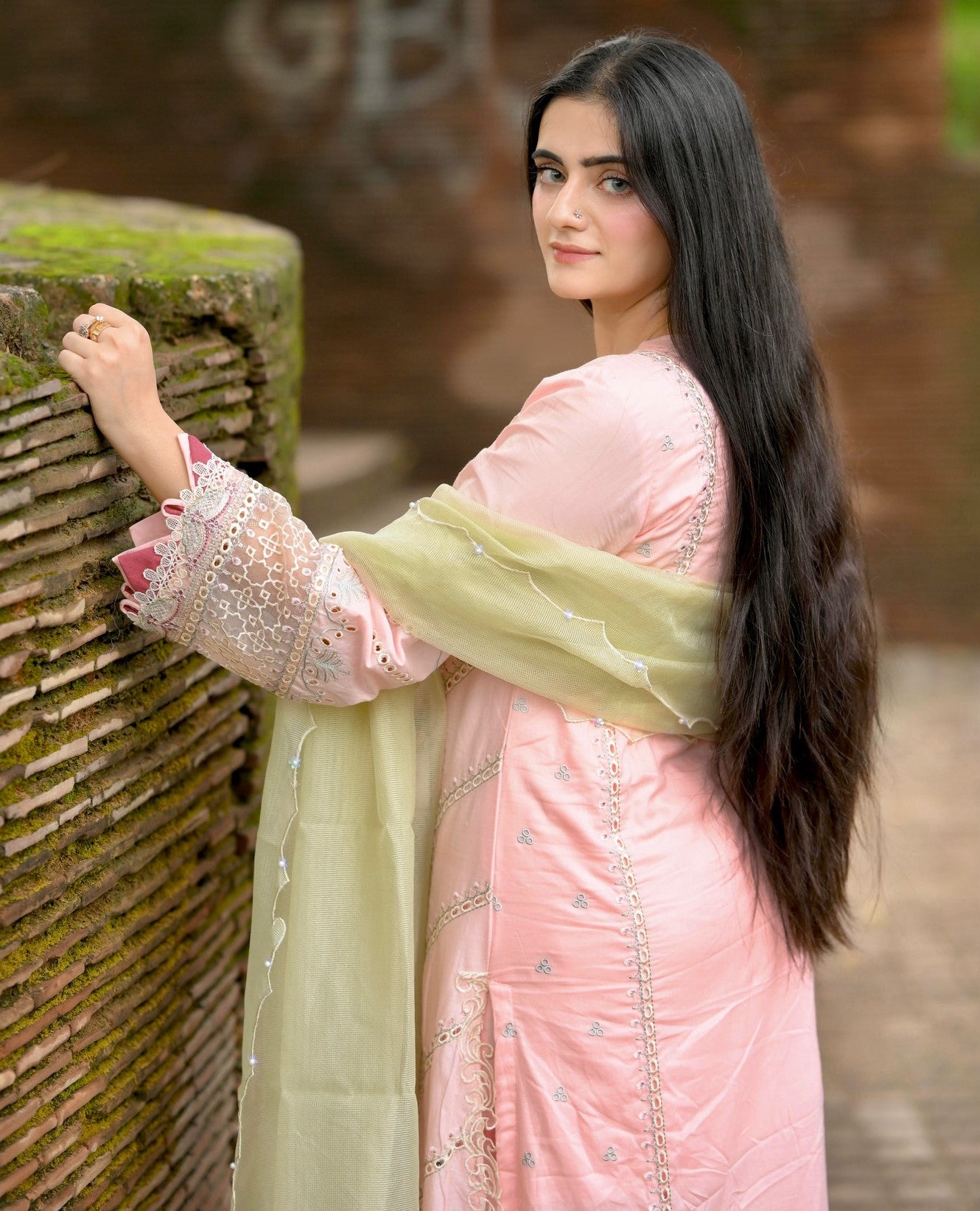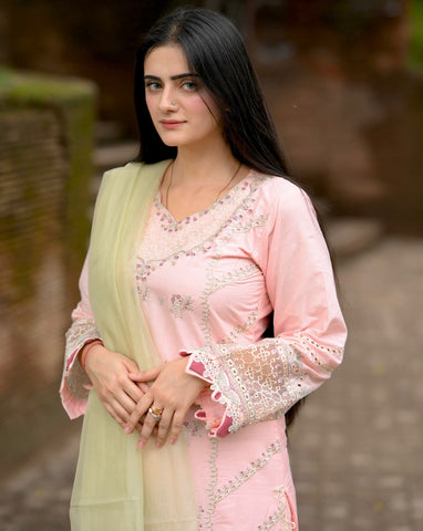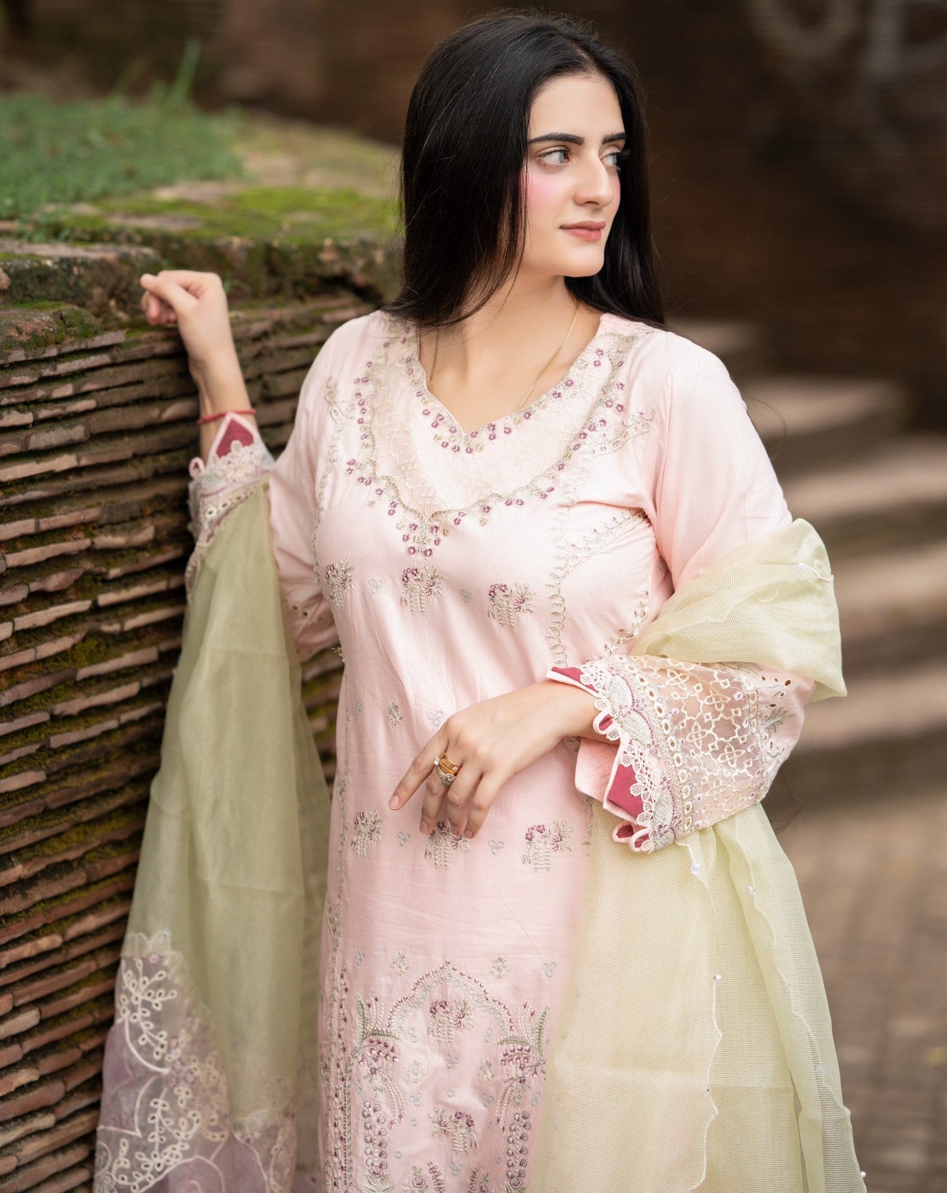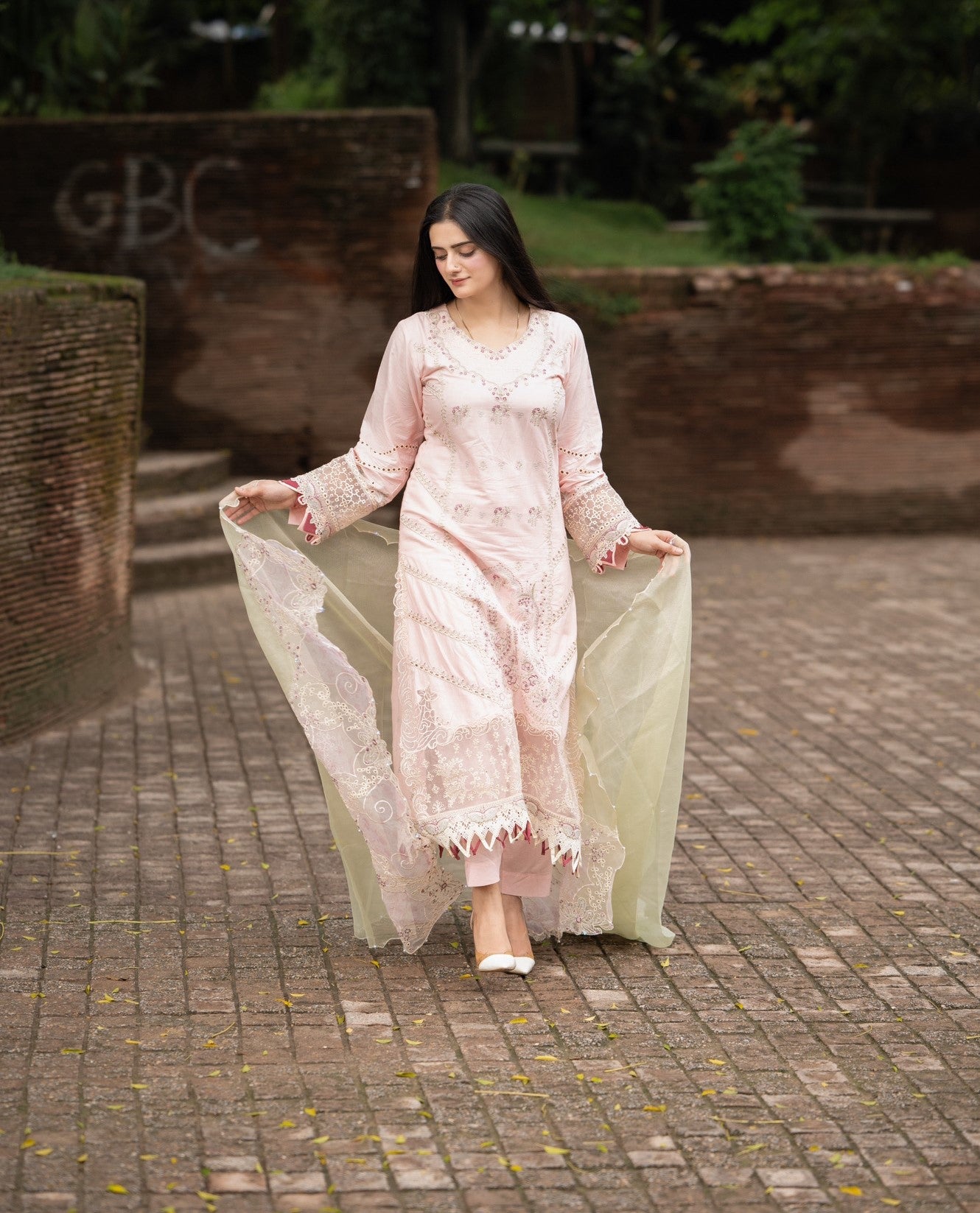 1-Introducing our exquisite Cotton Sequin Chikankari Embroidered Shirt,