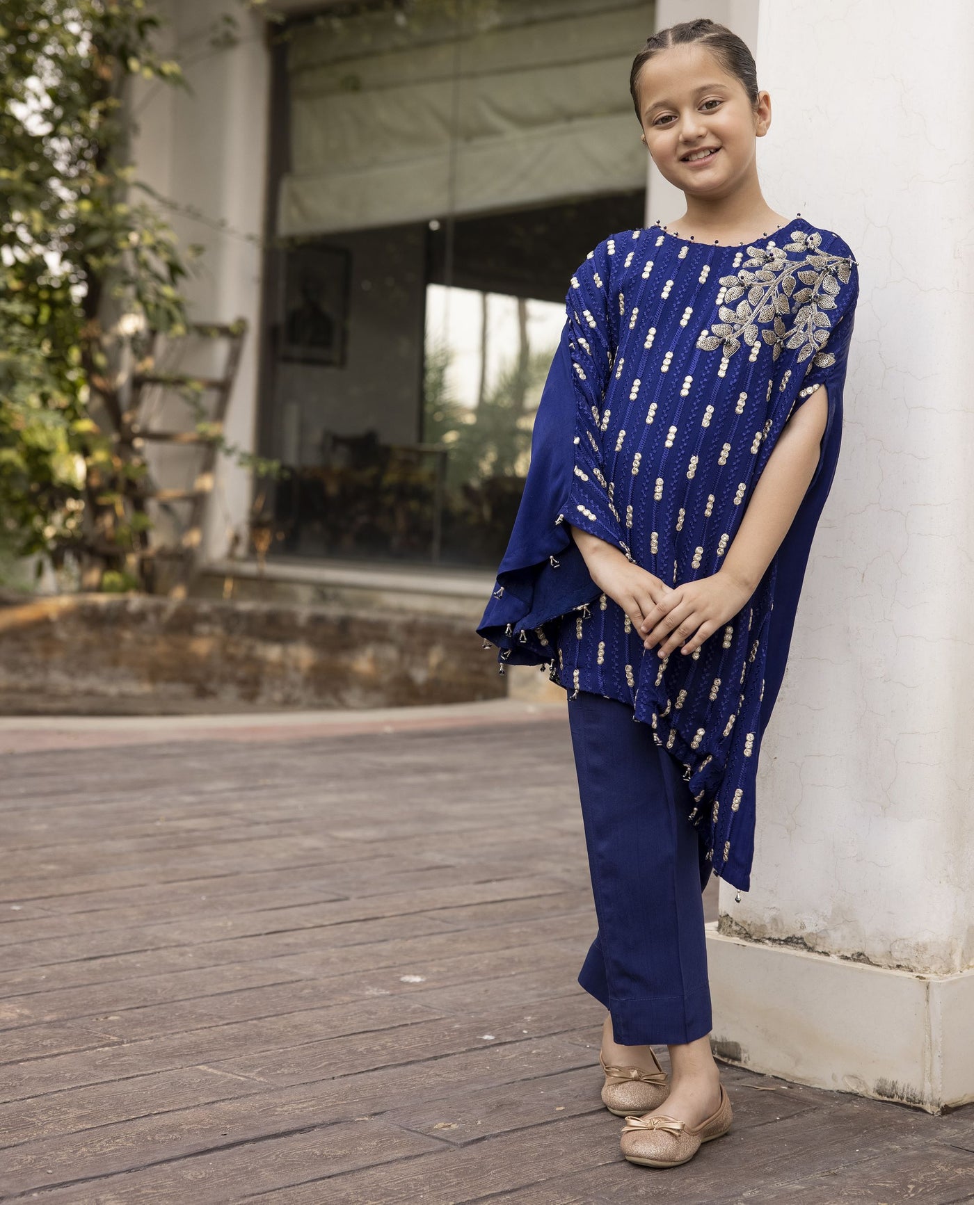 Complementing the cape is a sleek viscose trouser, meticulously designed to enhance the ensemble's sophistication and glamour. Together, they create a regal silhouette fit for royalty, ensuring you stand out with every step.