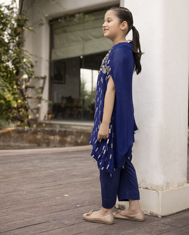 Indulge in timeless elegance with our Chiffon Sequin Embroidered Drop Corner Cape Ensemble. This exquisite cape is a masterpiece of craftsmanship, adorned with delicate hand-crafted adda work and adorned with beautiful tassels cascading gracefully from its hem.