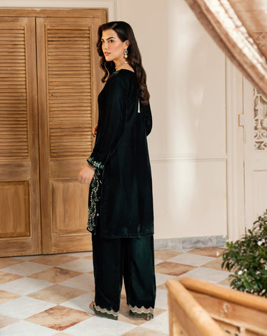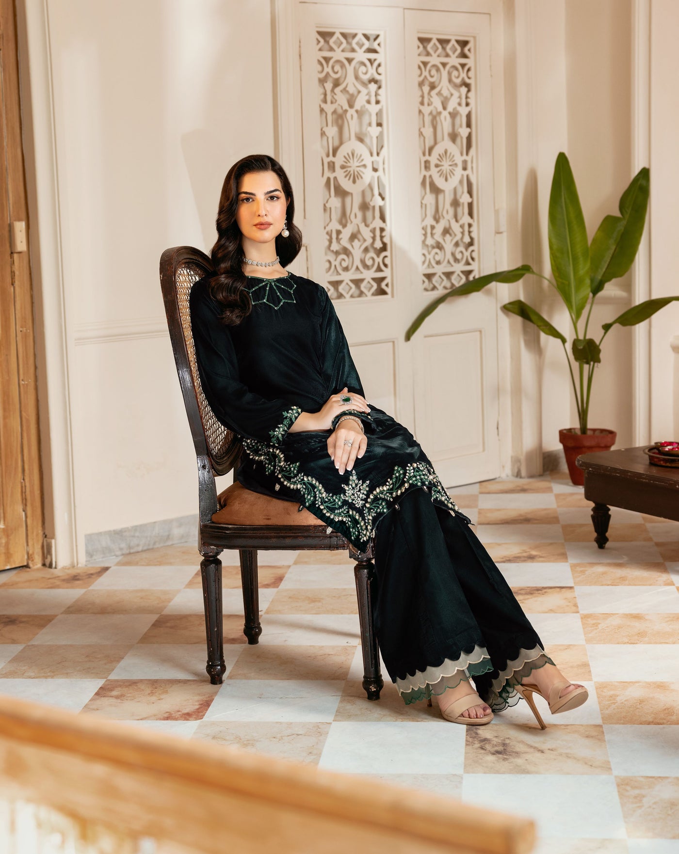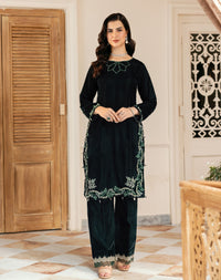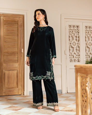 Paired with velvet trousers featuring beautiful designer laces on the border, this outfit is a showstopper that is sure to make a lasting impression.