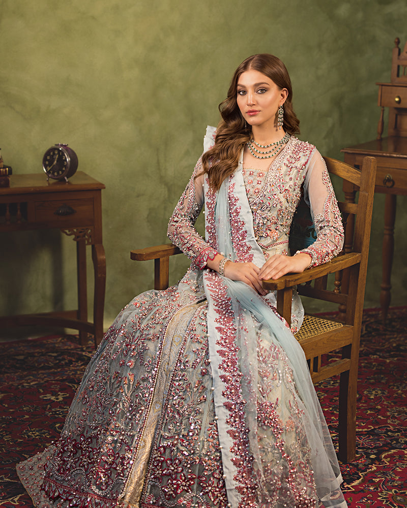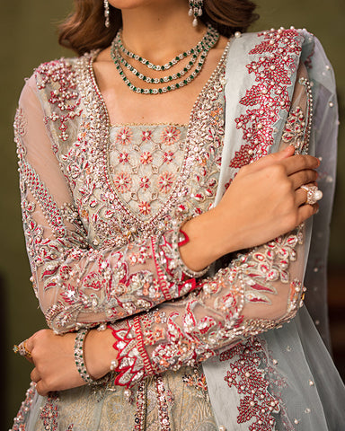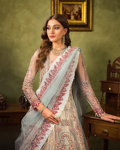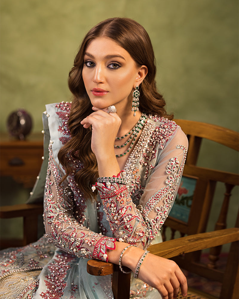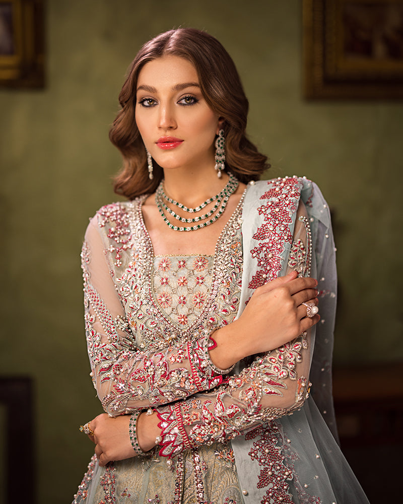 We have crafted a net embroidered dupatta, also embellished with a captivating pearl spray