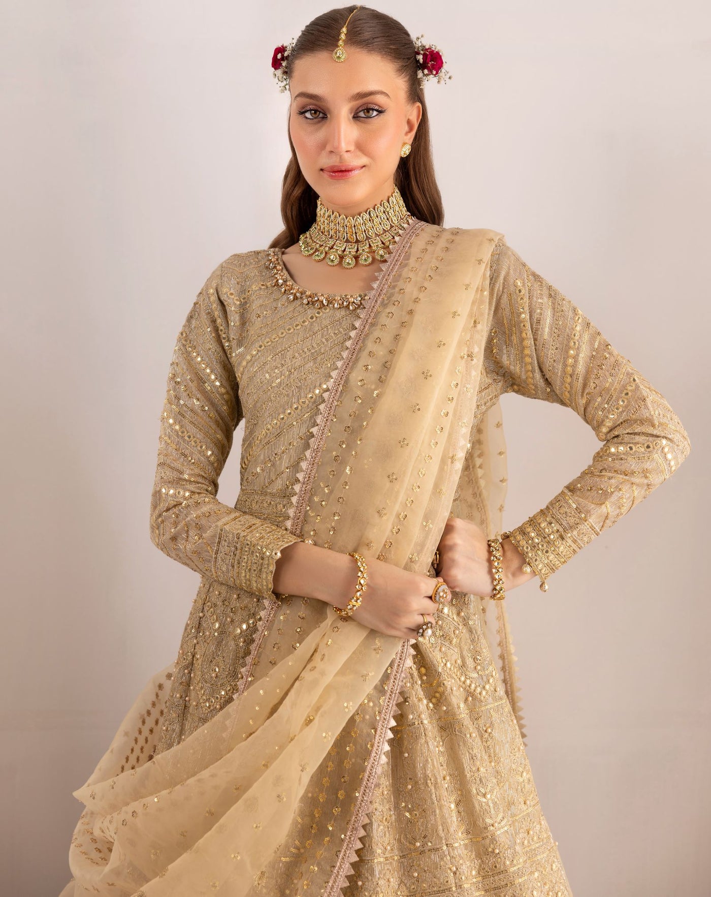 Organza Sequin Embroidered Dupatta: Complete the look with this stunning dupatta, adorned with delicate laces and shimmering sequins, perfect for any formal occasion.